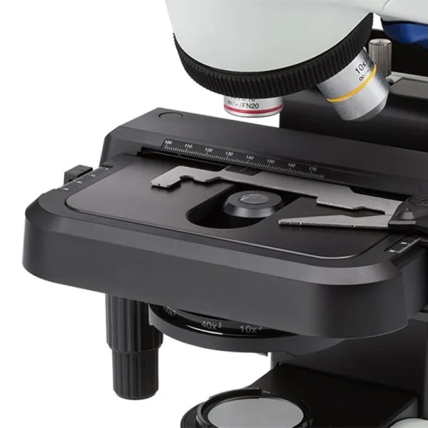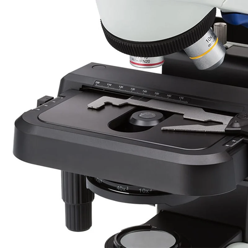 سر دوچشمی CX23 با چشمی‌های WF 10x و طراحی شیب‌دار، به کاربران این امکان را می‌دهد که به راحتی و بدون خستگی به مشاهده نمونه‌ها بپردازند. کنترل‌های به‌خوبی قرار گرفته و پایه باریک این میکروسکوپ، تنظیمات را آسان‌تر کرده و تجربه مشاهده را راحت‌تر می‌کند. همچنین، میز مکانیکی درجه‌بندی‌شده این میکروسکوپ، حرکت دقیق نمونه‌ها را تضمین می‌کند.